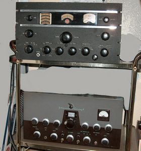 homebrew transmitter that runs a 4-250 modulated by a pair of 100TH's. Click here for the page showing this rig in detail. |